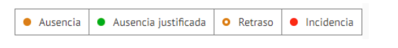 Cada tipo de incidencia se identifica en la aplicación mediante la siguiente leyenda:
