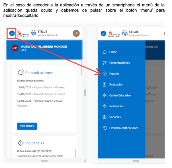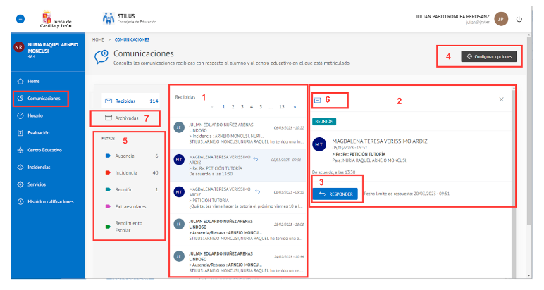 - Visualizar las comunicaciones del centro recibidas a través de Stilus-familias.