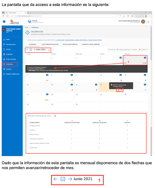 - Un Resumen mensual con las ausencias, retrasos e incidencias de comportamiento asociadas a la matrícula.